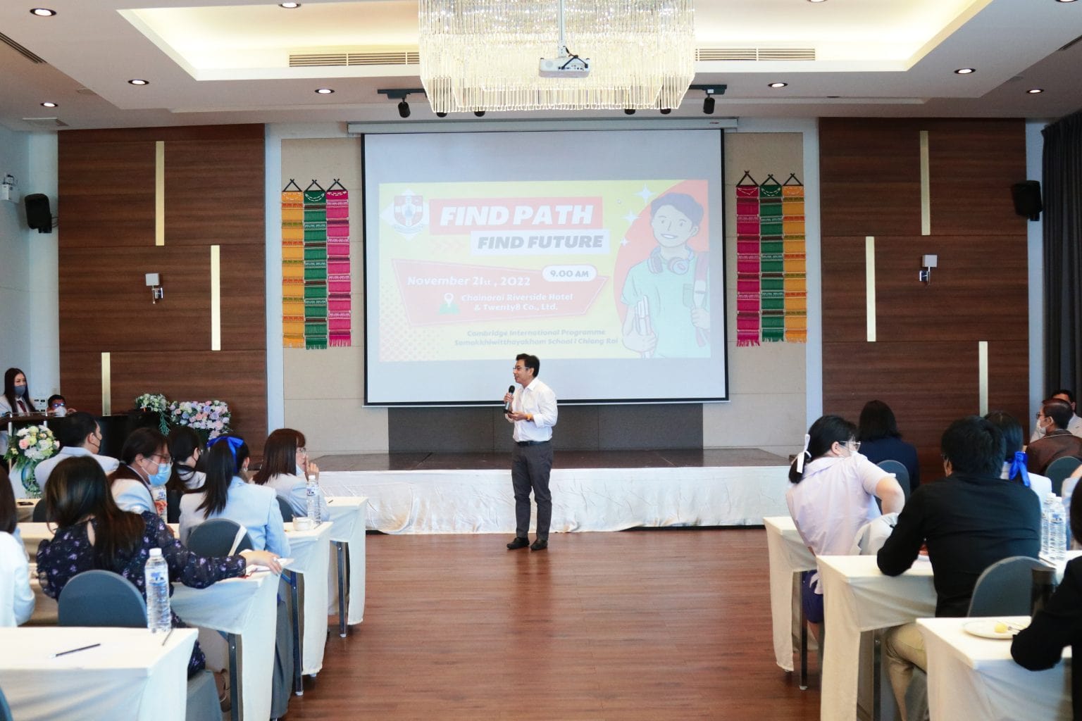 เมื่อวันที่ 21 พฤศจิกายน พ.ศ.2565 ณ โรงแรมไชยนารายณ์ ริเวอร์ไซด์ เชียงราย จังหวัดเชียงราย ทางทีมซีเอ็ด อะคาเดมี่ได้มีส่วนร่วมในงาน Findpath Find Future กิจกรรมค้นหาตนเองเพื่อเลือกวิชาเรียนในรายวิชา IGCSE และ A Level เพื่อวางแผนการเรียนในอนาคต (Find Path Find Future) สำหรับนักเรียนหลักสูตรเคมบริดจ์ เพื่อเป็นการวางแผนการตัดสินใจเลือกรายวิชาเรียน เป็นส่วนหนึ่งในการวางแผนการศึกษาต่อที่เหมาะสมกับความสามารถและความถนัดของนักเรียน โดยมีนักเรียน เข้าร่วมจำนวน 52 คน ดำเนินกิจกรรมโดยห้องเรียนพิเศษโปรแกรมนานาชาติ หลักสูตรนานาชาติเคมบริดจ์